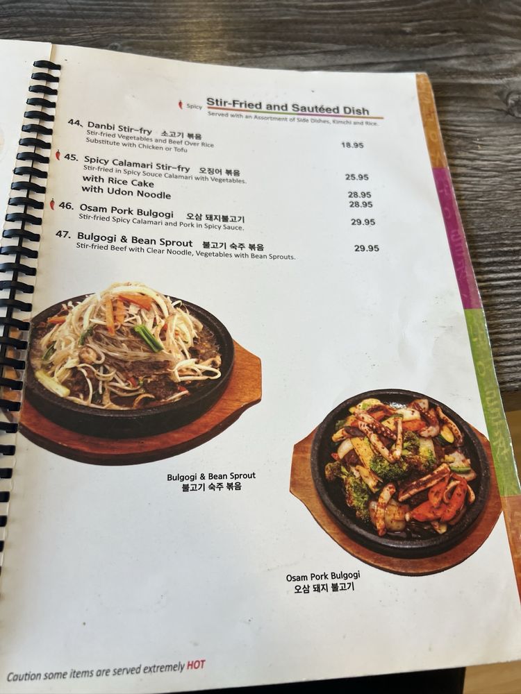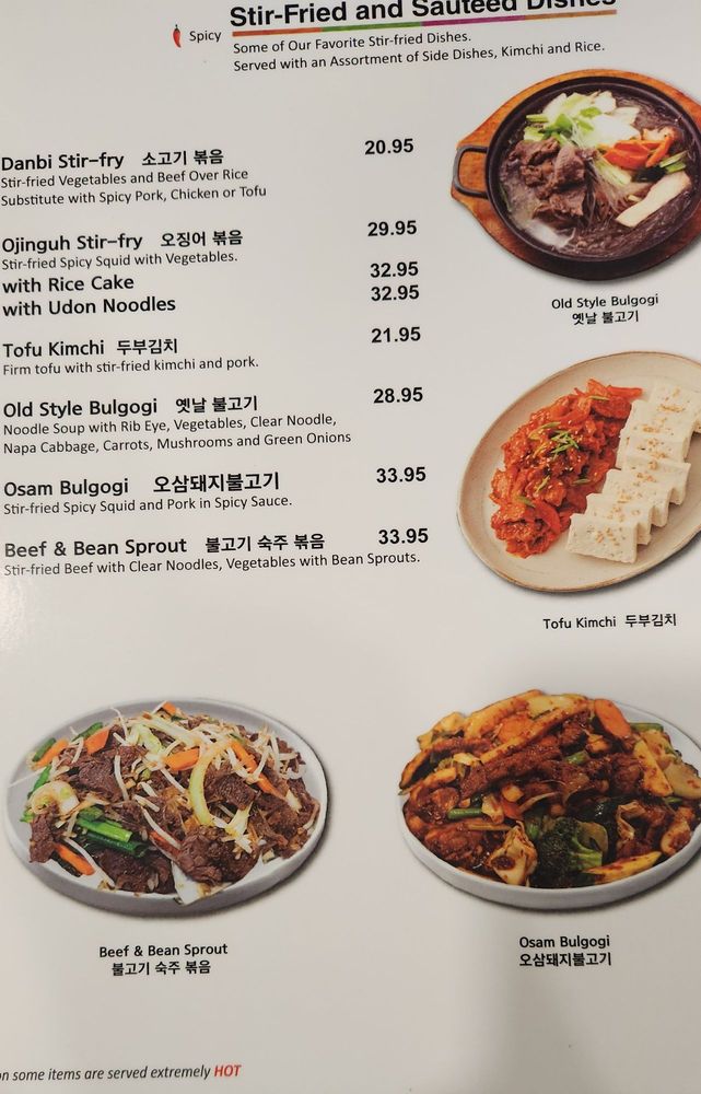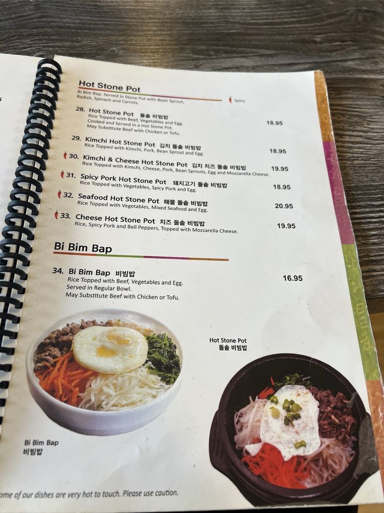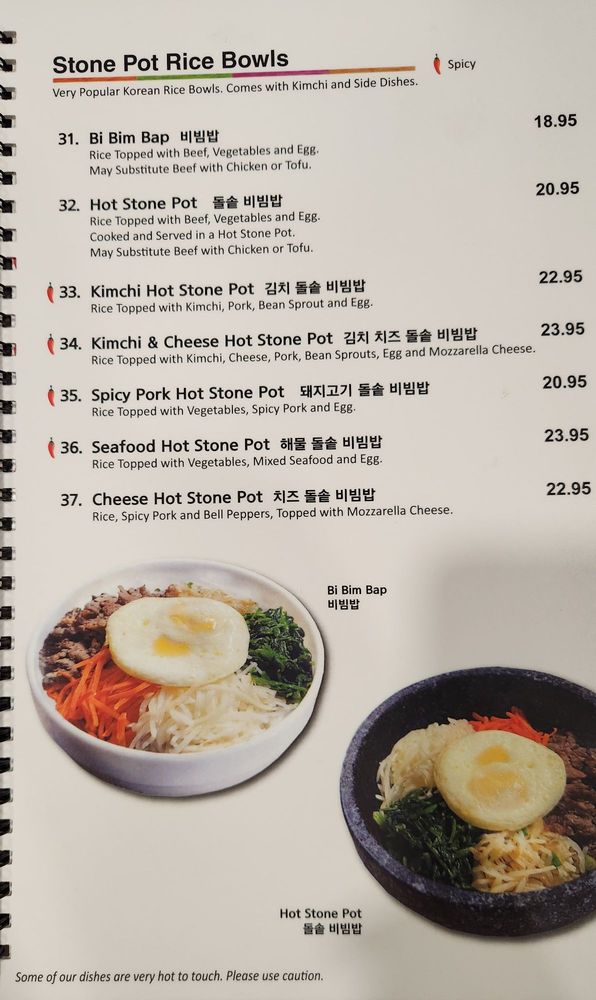 Same as bibimbap, but cooked and served in a hot stone pot. May substitute beef with chicken or tofu.